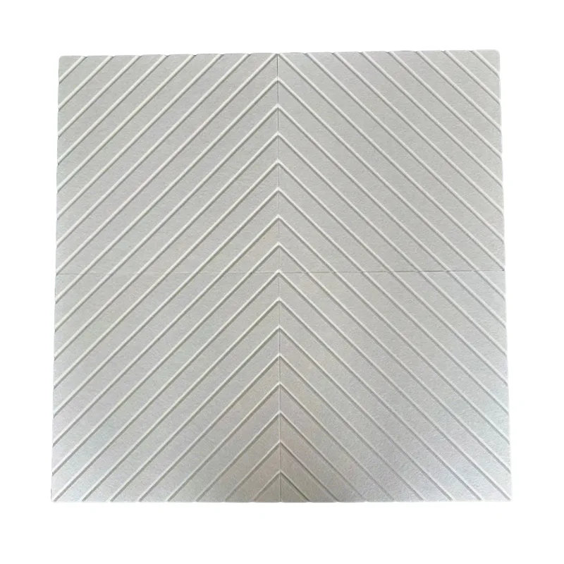 ကျွန်ုပ်တို့၏ Beige V-channel PET Felt Acoustic Panel သည် အဝတ်အထည်အမျှင်များနှင့် တူညီသောပစ္စည်းဖြစ်သည့် PET polyester fiber ကိုအသုံးပြုထားပြီး အခြေခံပစ္စည်းအဖြစ်၊ မျက်နှာပြင်သည် နူးညံ့သိမ်မွေ့သော V-groove texture ဖြင့် ဖောင်းကြွကာ နူးညံ့ပြီး အသားအရေနှင့် လိုက်ဖက်သည်။ အတွင်းပိုင်းသည် သေးငယ်သော ချွေးပေါက်များဖြင့် ပြည့်နှက်နေသည် - အသံက ၎င်းကို ထိလိုက်သောအခါ၊ ရောင်ပြန်ဟပ်ခြင်း သို့မဟုတ် ပဲ့တင်သံမပါဘဲ စုပ်ယူနိုင်ပြီး ဆူညံသံပြဿနာများကို ဖြေရှင်းပေးပါသည်။ အဝါနုရောင်ရှိသော အရောင်သည် အမျိုးမျိုးသော အလှဆင်စတိုင်များကို ဖြည့်စွမ်းပေးကာ ဆူညံသံများကို လျော့ပါးစေကာ အလှအပဆိုင်ရာ ဆွဲဆောင်မှုနှစ်ခုစလုံးကို ရရှိစေပါသည်။