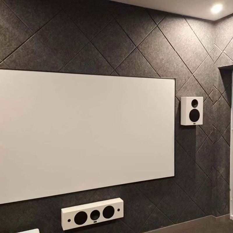 အမျှင်များအားလုံးသည် ထုတ်လုပ်နေစဉ်အတွင်း အလျားလိုက်နှင့် ဒေါင်လိုက်ရောယှက်နေသောကြောင့် PET acoustic board အား တောင့်တင်း၊ လိုက်လျောညီထွေရှိပြီး သက်ရောက်မှုကို ခံနိုင်ရည်ရှိစေသည်။အပ်ဖြင့်ထိုးခြင်းဖြင့် Studio Acoustic Panel တွင် သေးငယ်သောအပေါက်များစွာ ပါ၀င်ပြီး Studio Acoustic Panel သည် ဆူညံသံများကို လျှော့ချရန်နှင့် အသံပိုကောင်းစေကာ နေရာပိုတိတ်ဆိတ်စေရန် ကောင်းမွန်သော အသံထွက်ပစ္စည်းအဖြစ် ဖန်တီးပေးပါသည်။